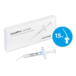 CanalPro CalciSeal je biokeramický sealer na báze kremičitanu vápenatého pripravený na okamžité použitie, navrhnutý pre vynikajúcu trvalú obturáciu. Jeho inovatívne bioaktívne zloženie spúšťa tvorbu kryštálov hydroxyapatitu na rozhraní s dentínom, čím zabezpečuje chemickú väzbu s výnimočnou marginálnou integritou.