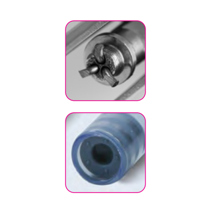 Nerezová striekačka na všetky dostupné cylindrické ampuly s dierovou zátkou.
